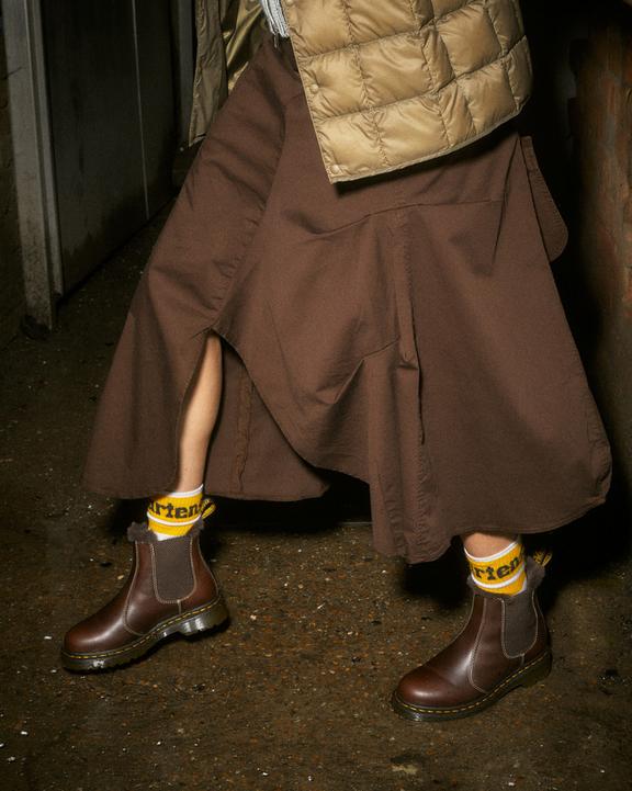 Pour affronter la mauvaise météo en tout confort. Découvrez une version fourrée de nos Chelsea boots 2976 inspirée des chaussures de randonnée des années 90. Cette paire est réalisée en Classic Pull Up marron, un cuir satiné au caractère subtil, et repose sur notre semelle BEN renforcée de nos surpiqûres jaunes signature. Retrouvez des surpiqûres écrues contrastantes, des empiècements élastiqués ton sur ton sur les côtés et une languette à logo marron et jaune au talon.